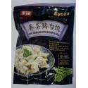 Zutaten: Schweinefleisch (30%), Weizenmehl(29%), Wasser, Pilz (14%), Sojasauce (Wasser, Sojabohnen, Salz, Weizenmehl, E202), Hefeextrakt, Backsoda, Salz, Pfeffer, Zucker, Frühlingswiebel, Ingwer. Schweinefleisch: gezüchtet/geschlachtet in der EU.